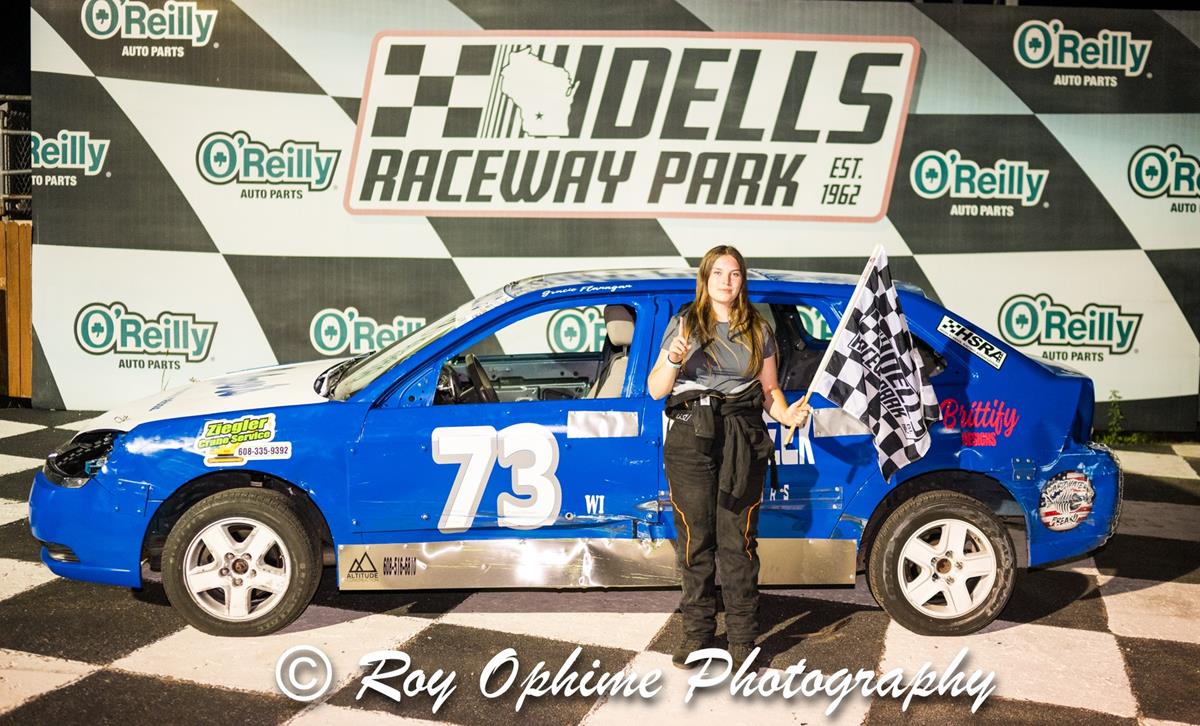 Wisconsin Dells WI-Curtis Hellickson won the final HSRA feature of 2024 on O’Reilly Auto Parts Championship Night it wasn’t quite enough as Gracie Flanagan came back from early adversary to claim both Track Champion and Rookie of the Year Honors.
