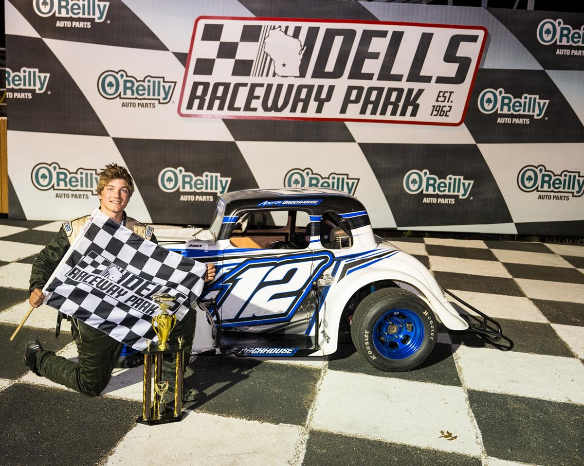 Wisconsin Dells WI-Defending DRP Champion Ayrton Brockhouse picked up where he left off with a big win in the Great North Legends INEX Legends on Gandrud Performance Parts Night . Kaleb Baumgart and Riley Goodwin would bring the field of Legends to the line for their 25 lap main event. As is customary in the Inex classes the racing surface exploded with 3 and 4 wide battles as the faster qualifiers wasted no time going forward. I would not take long for Brockhouse and Dillon Schwanbeck to find the front and go to battle for the top spot. A few cautions would insure the battle for the win would keep raging as Jackson Lewis. Would join the battle. He would dispatch of Schwanbeck and bring the fight to Brockhouse. The 12 was just too strong as he held off Lewis for the win. Schwanbeck would be third followed by Jayden Johnson and Tim Brockhouse. Hunter Jordan was fastest qualifier of 22 cars with a lap of 15.443. Jackson Lewis would win the Last Chance Race while Tj Moon, Alex Ruedinger and Cael Slater won the Fast Dash and respective Heats.