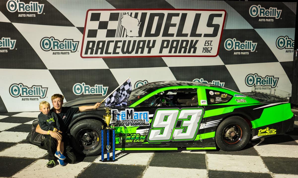 Wisconsin Dells WI-A pair of Mackesy’s Split the Walbeck Classic Twin Features Presented by Don Larson Superstore for the CWRA Super Late Models. In the first feature Mark Mackesy charged forward from his four place starting position to take the lead from Jeff Weinfurter on lap twelve. Mackesy would build an insurmountable lead as he would cruise to the win over Tyler Sauter, Jeff Weinfurter, Corey Jankowski and Dillon Mackesy. In feature number two it was the younger Mackesy who would utilize a fierce strategy to get to the front taking the lead on lap seven from Paul Paine. Though Paine would make a late race charge Dillon Mackesy who was Fast qualifier on the night was just too far gone and would take the main event win. Paul Paine would finish second followed by Mark Mackesy, Jeff Weinfurter and Tyler Sauter. By virtue of his 1st and 3rd place feature finishes Mark Mackesy was crowned the Overall Champion for the Walbeck Classic Presented by Don Larson Superstore for the CWRA Super Late Models.