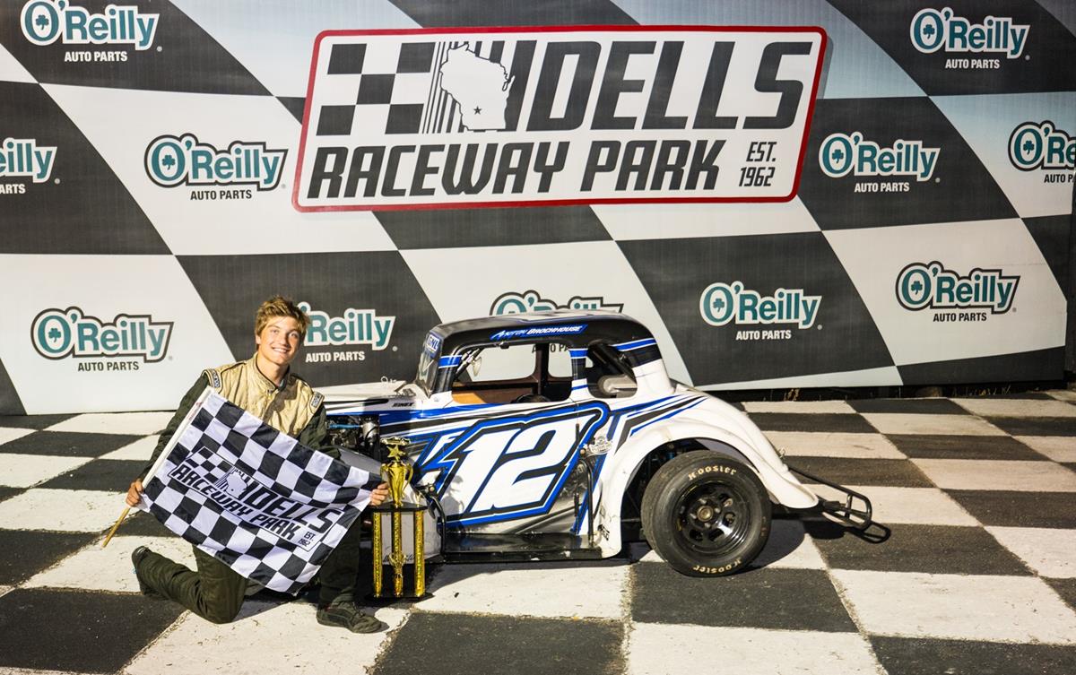 Wisconsin Dells WI-Minnesota Driver Ayrton Brockhouse rocketed to a clean sweep in the Great North Legends INEX Legends at The Walbeck Classic presented by Don Larson Superstore Saturday Night at Dells Raceway Park. After starting the night with fast time with a lap of 15.540 Brockhouse won the Fast Dash and set his sights on the 25 lap feature. Starting from the 10th position it was evident early that he would be the one to beat as he worked his way through the field and into the lead before the halfway point of the event. Brockhouse would cruise to the sweep followed to the line by Rose Borntreger, Dallas Kibbe, Andrew Borntreger and Art Hahn. The evening’s heat races were won by Tyler Edmundson and Art Hahn.