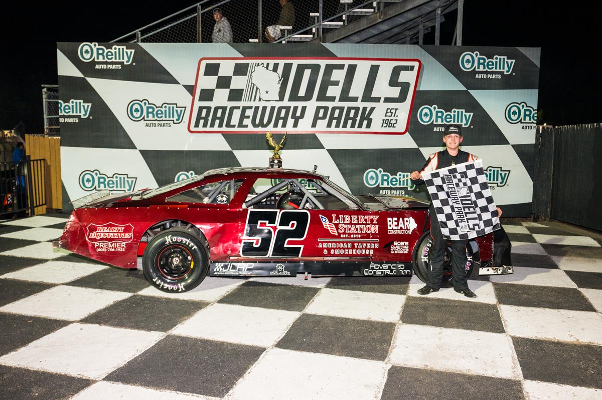 Wisconsin Dells WI-Avery Linnerud of Milton WI won the Hobby Stock NSTC 30 lap feature event on Friday Night at Dells Raceway Park while Waylon Robinson finished in the second spot securing him the Dells Raceway Park Season Championship.
